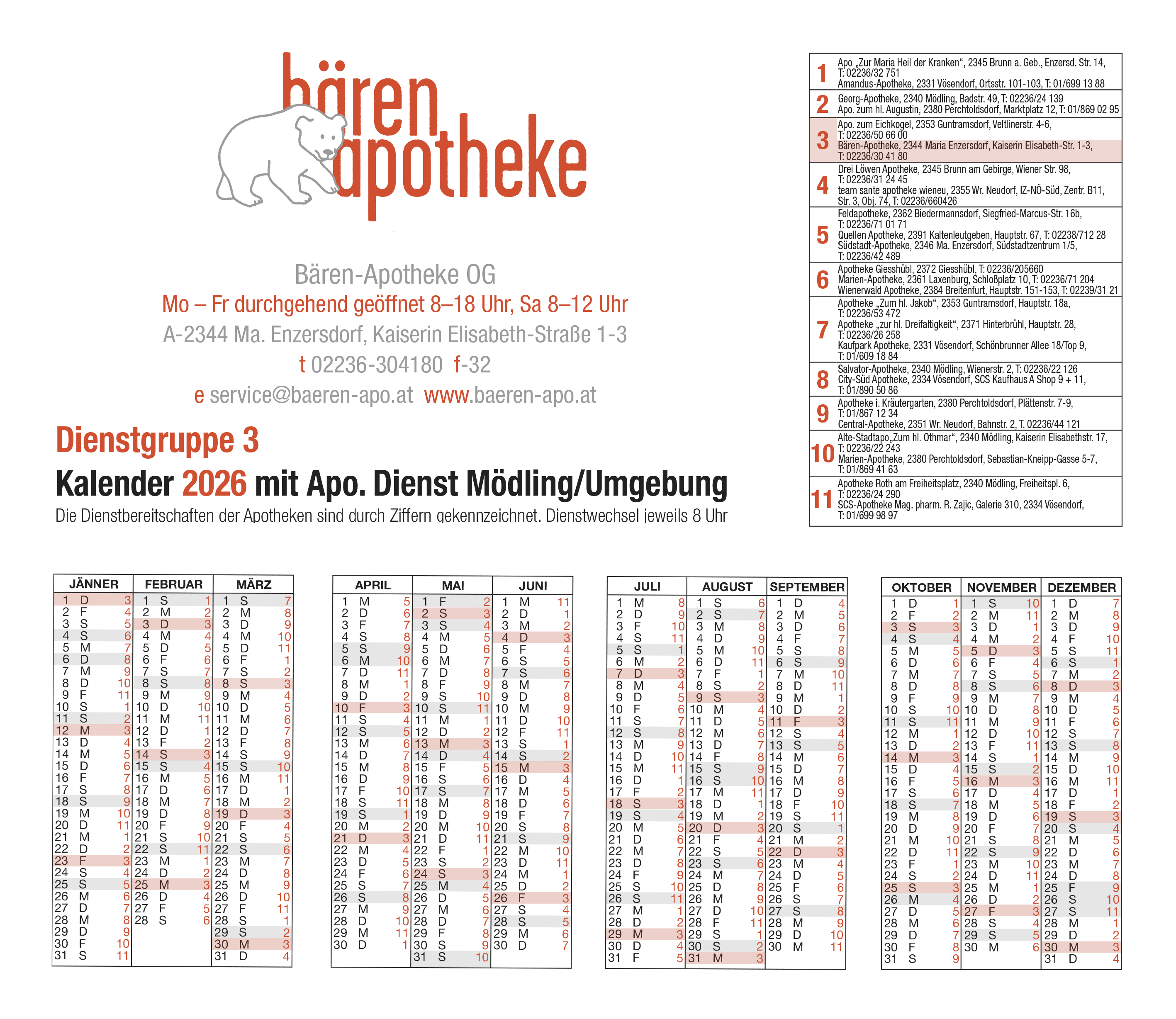 Nacht- und Bereitschaftsdienste der Mödlinger Apotheken